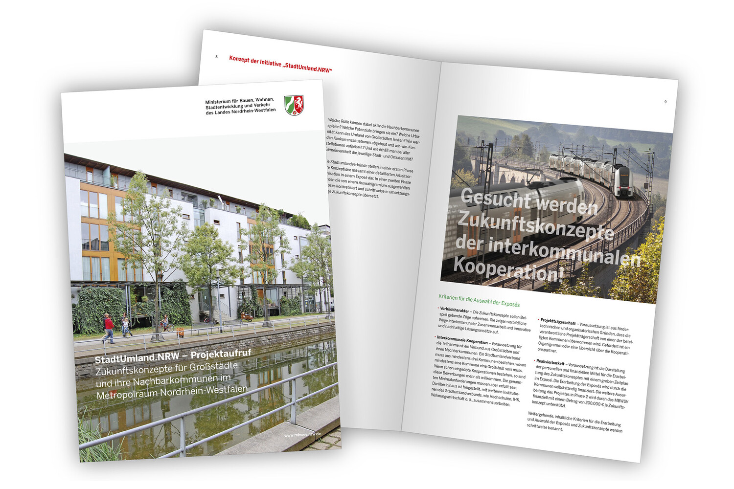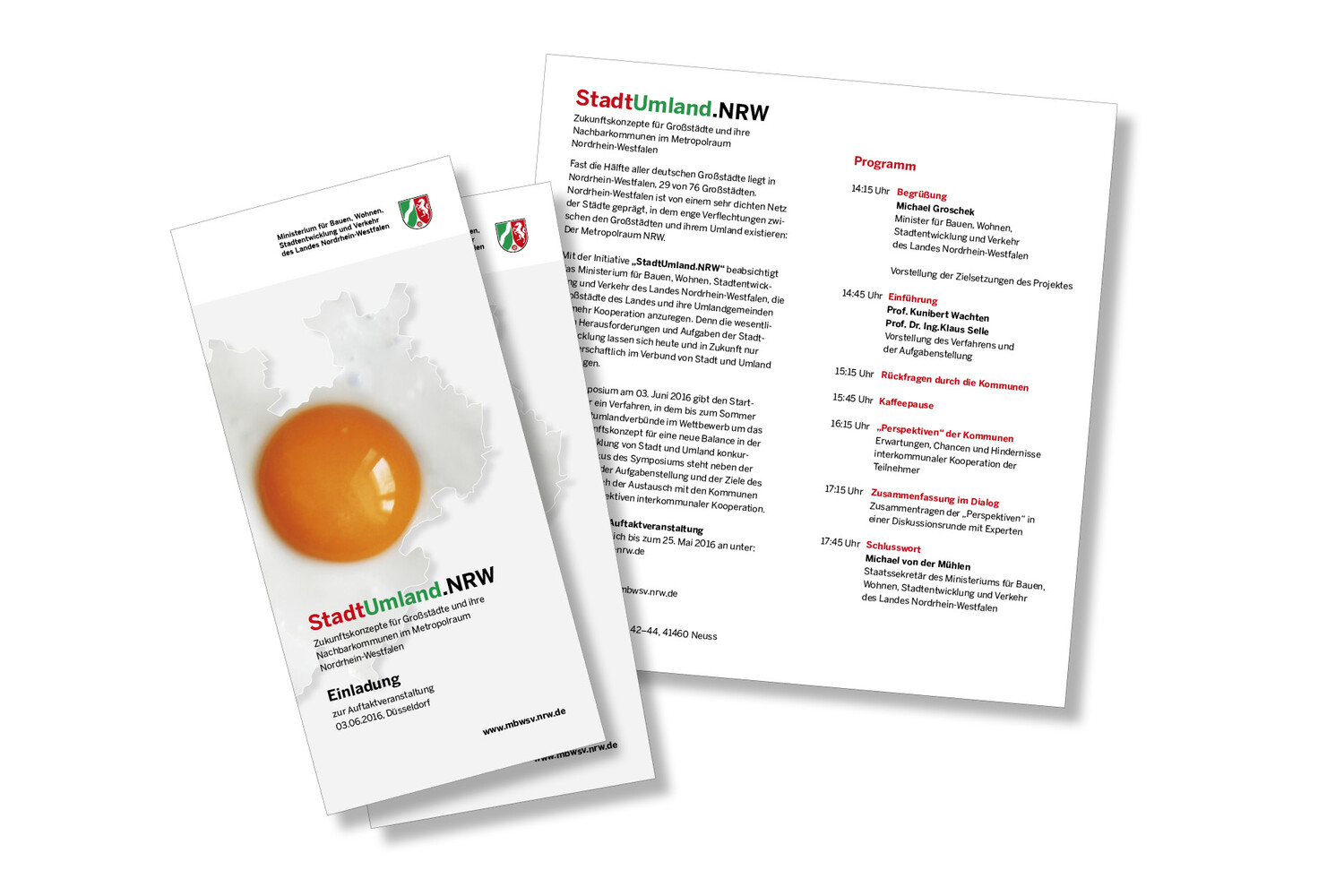 StadtUmland.NRW – ein Aufruf, der Kommunen und Städte zu gemeinsamen, neuen Projekten führt. Unsere Einladung zur Auftaktveranstaltung bringt die Sache visuell auf den Punkt. Auslobungsbroschüre und Website im Responsive Design sind direkt in der Ansprache und laden zum Mitmachen ein.